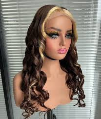 Add Medium-Length Brown Wavy Wig with Blonde Highlights to the cart