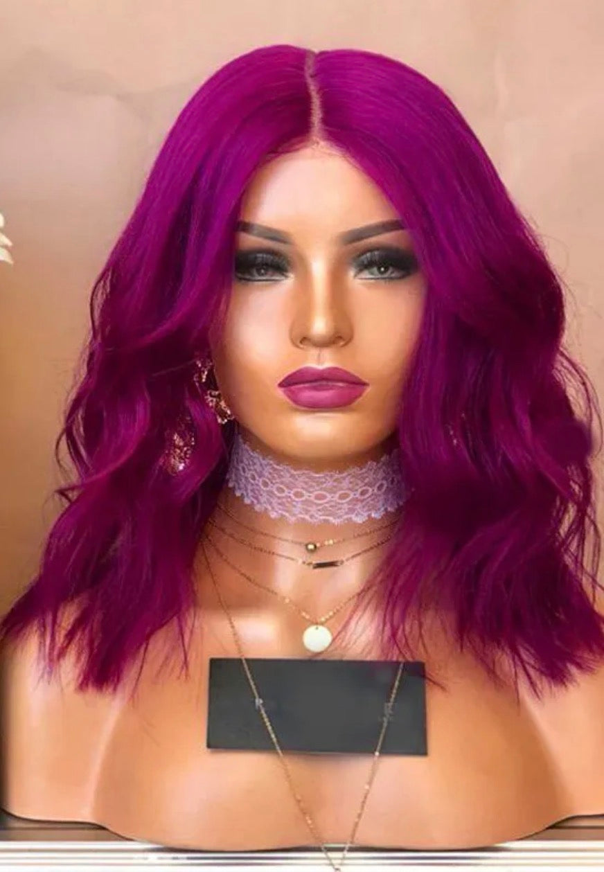 Regular price $400.00Expertly handcrafted with deep magenta rooted human hair, our Lob Wig adds a touch of elegance and versatility to any look. Experience the luxurious feel and natural movement of real hair while effortlessly styling your locks. Elevate your hair game with our Deep Magenta Rooted Lob Wig.This is a medium-length wig (a "lob" or long bob) styled with straight hair that falls just past the shoulders. The dominant color is a bold, rich magenta or deep fuchsia pink. It features a visible dark root (likely black or deep brown) at the crown, which adds depth and a more dimensional, dramatic contrast to the bright color. The ends appear slightly layered or cut with a subtle U-shape. This style is perfect for making an edgy fashion statement or for creative expression.